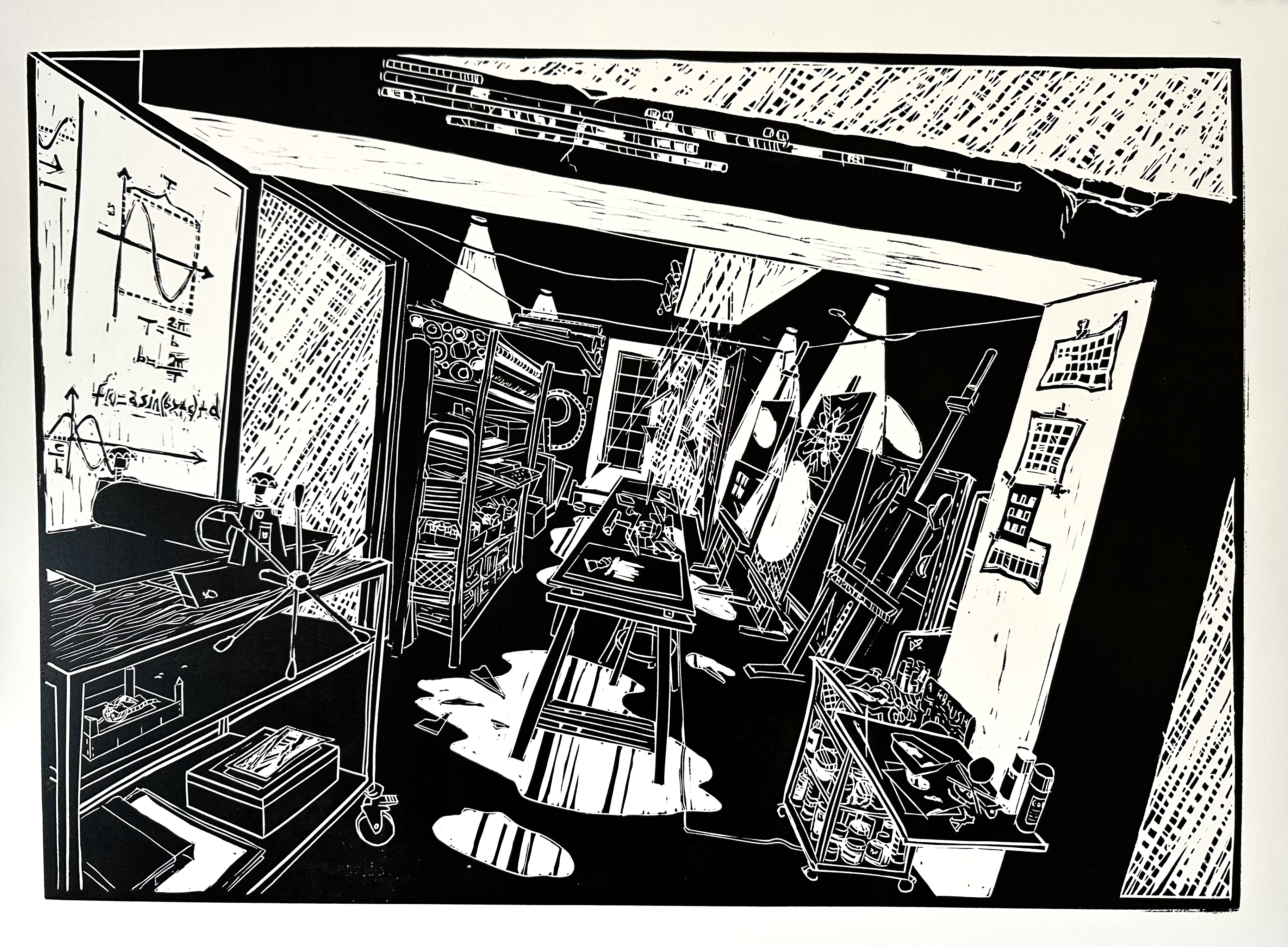 For tiden er jeg rejst tilbage til rødderne, til grafikken og til den sorte tush. Jeg er begejstret for sort flydende tush, tryksværte og skæve farveakkorder. Mine motiver tager udgangspunkt i den hjemlige tryghed med en spejlverden af interiørlandskaber sat i kontrast til al det der vælter om ørerne på os. Roen finder jeg i havet. Det uendelige hav høje dybe brede landskaber og vandskaber der snor og vrider sig, i uendelige universer og en uundgåelig horisont eller to. Smagsprøver fra nyere udstillinger eller dugfriskt fra atelieet. Arkiv i menuen øverst. Dette website er endnu lidt håndholdt. (Kun Linocut, Ink, Etchings and Drypoint, Cyanotypi, Colorpencils og Paintings er fungerende lige nu, resten er på vej...!)